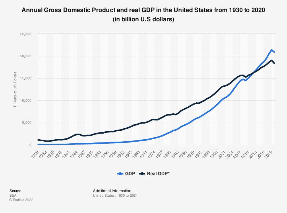 Since the 1930’s our economy has grown a lot - we’re talking 20x in real GDP terms!